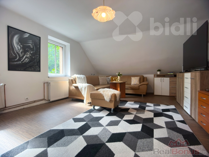 Kromě téměř 75m2 prostoru v dispozici 2+1 získáte navíc i komoru na mezipatře.