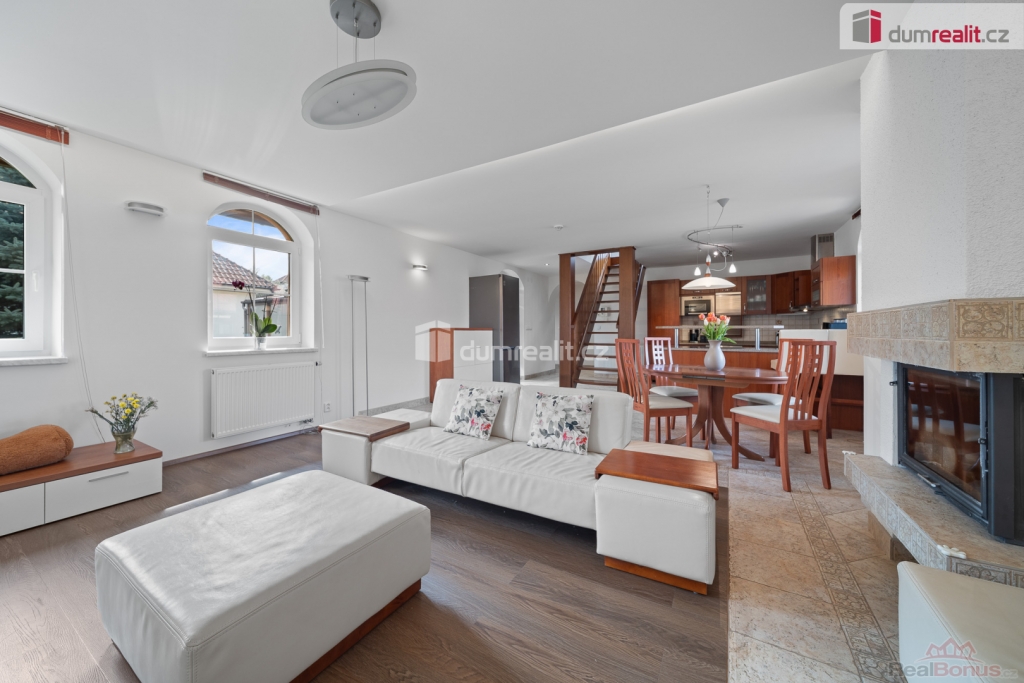 Včetně právního, realitního a kompletního servisu., v exkluzivním zastoupení prodej prostorné, zděné vily o dispozici 7+kk v klidné obci Sluštice (Praha-východ) ideální volba pro rodinné bydlení s rychlou dostupností do centra Prahy.