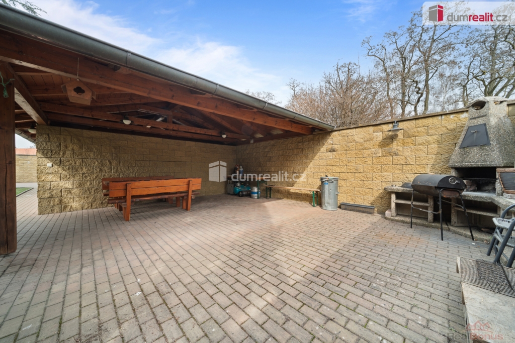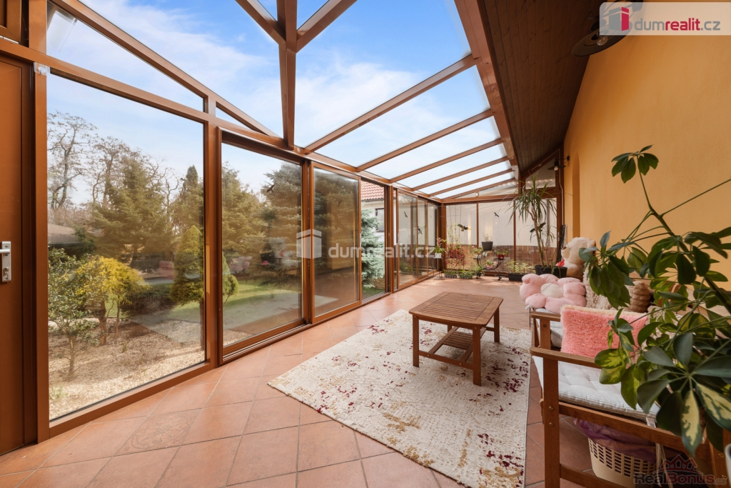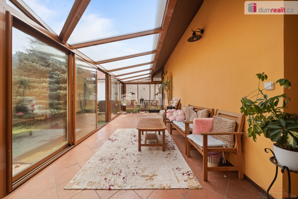 Dům stojí na zastavěné ploše 221m s přilehlým pozemkem o velikosti 681 m. Na zahradě se nachází venkovní pergola s posezením ideální pro grilování a relaxaci. Samozřejmostí je garáž a navíc venkovní kryté parkovací stání. Součástí nemovitosti je zimní, krytá zahrada přístupná přímo z přízemí objektu.