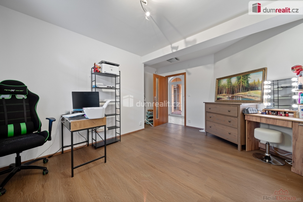 Dispozice domu je promyšleně rozdělena do tří podlaží. V přízemí naleznete tři samostatné pokoje, prostorný obývací pokoj s kuchyňským koutem, koupelnu s WC a samostatné WC. V 1. nadzemním podlaží jsou další tři pokoje, koupelna a WC, což poskytuje dostatek prostoru pro větší rodinu či kombinaci bydlení a home office. Suterén domu nabízí technické zázemí, prádelna se sprchou a WC, sklad a dvě další místnosti s širokým využitím.