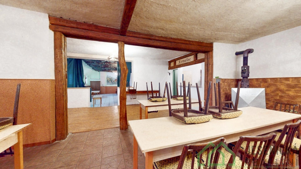 Dominantou domu je velký prostorný taneční sál, který se může využít např. jako autoservis, nebo prostor pro různou výrobu. V domě ve spodní části jsou další prostory ,které slouží pro občerstvení. Nachází se zde barový pult, kuchyň, šatna a sociální zařízení, nebo zázemí pro zaměstnance. Horní část domu ( podkroví ) nabízí možnost vybudování velkého podkrovního bytu pro celou rodinu.