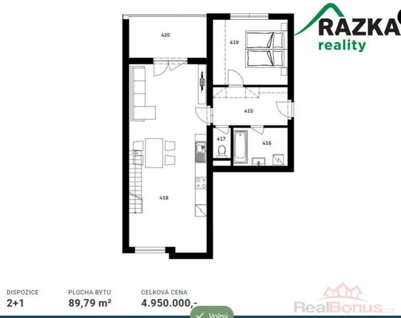 | Dispozice bytu | 2+1 |