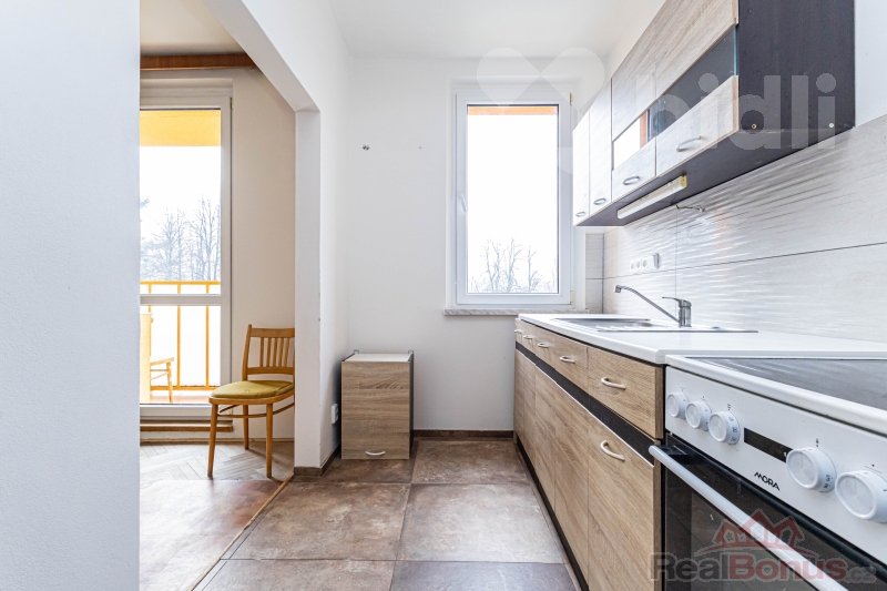 Nabízíme byt 2+kk o celkové podlahové ploše 55,8m2, který se nachází v 2NP revitalizovaného a zatepleného domu v obci Žulová. Byt je světlý a nabízí příjemný prostor pro pohodlné bydlení. Byt má plastová okna. V předsíni, kuchyni a koupelně je položena dlažba. Koupelna je vybavena sprchovým koutem, umyvadlem a WC, ohřev vody je řešen elektrickým bojlerem. V předsíni se nachází vestavná skříň a praktická komora, kterou lze využít jako šatnu. Kuchyně je propojena s obývacím pokojem, ze kterého je vstup na balkon s krásným výhledem na Boží horu. V pokoji jsou parkety, na kterých je položeno linoleum. V obývacím pokoji parkety. Elektřina v bytě je nová. Vytápění lze mít elektrickými sálavými panely, akumulačními kamny a je zde možnost instalace plynového kotle - plynová přípojka se nachází na chodbě domu. Byt má velmi nízké provozní náklady, které činí 1 640 Kč měsíčně, včetně dlouhodobé zálohy do fondu oprav. Velkou výhodou bytu je jeho světlost, klidná lokalita a nízké náklady na bydlení. Parkování je možné přímo před domem. PENB bude dodán.