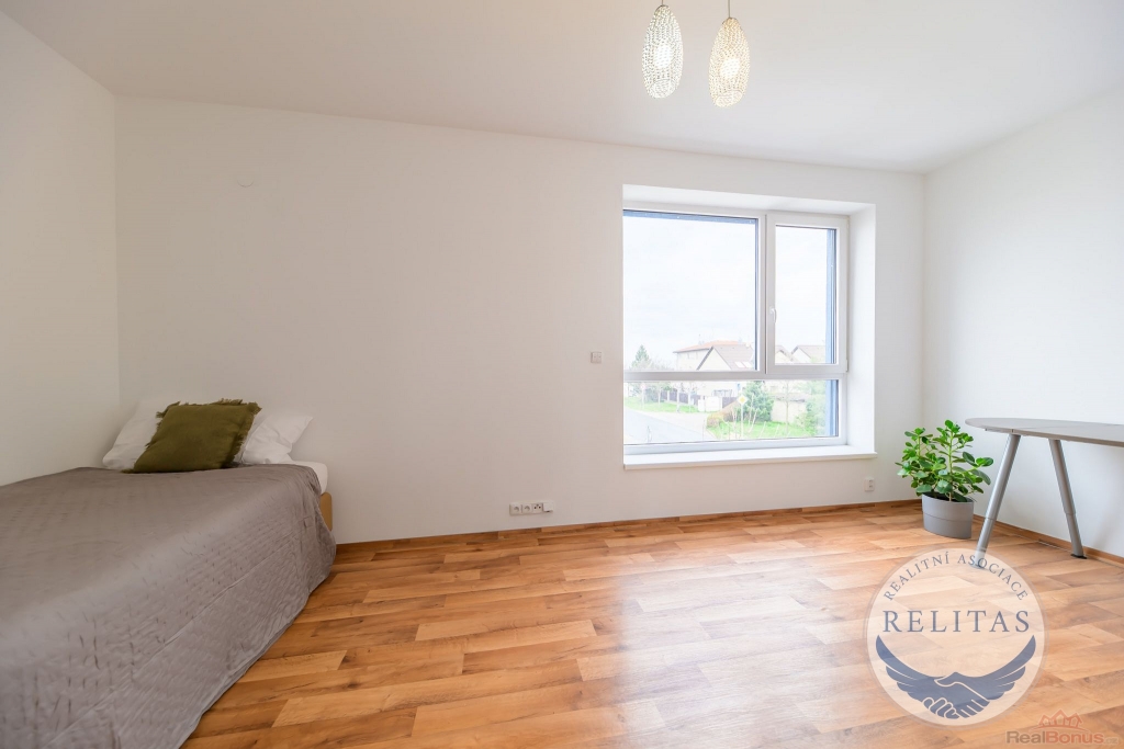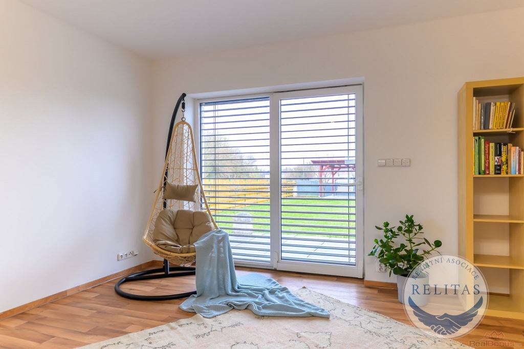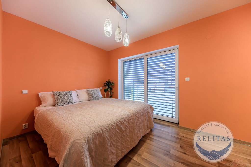 Dispozičně řešen pro rodinu i pro kombinaci bydlení s prací z domova. V přízemí se nachází prostorný obývací pokoj s kuchyňským koutem, dále ložnice/pracovna, šatna, koupelna, technická místnost a úložná komora. V patře jsou dvě samostatné ložnice, druhá koupelna a také menší kuchyňka využitelná pro vícegenerační bydlení, dospívající děti nebo pohodlné zázemí pro hosty. Na všech oknech jsou elektricky ovládané moderní venkovní žaluzie. Vytápění a TUV zajišťuje plynový kotel, podlahové vytápění, dům napojen na vodovod a kanalizaci.