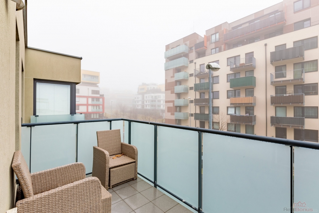 Pronájem bytu 2+kk s terasou a garážovým parkovacím stáním v rezidenčním projektu Britská čtvrť v ulici Svitákova, Praha 13 - Stodůlky.