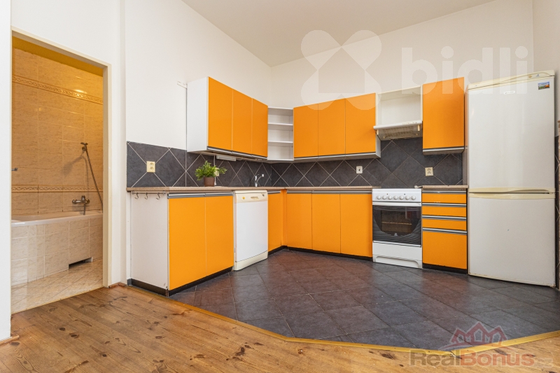Dispozici tvoří vstupní chodba, předsíň, obývací pokoj s kuchyňskou částí, prostorná ložnice a koupelna s rohovou vanou a toaletou. K bytu náleží sklep a také parkovací stání ve dvoře, do kterého je vjezd zajištěn automatickou bránou.