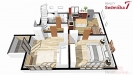 Byt je v 3. NP bytového domu se třemi byty. Má prostornou předsíň, kuchyň s jídelním koutem, dva pokoje, balkón, koupelnu s WC a v podkroví je velká jednoprostorová místnost.