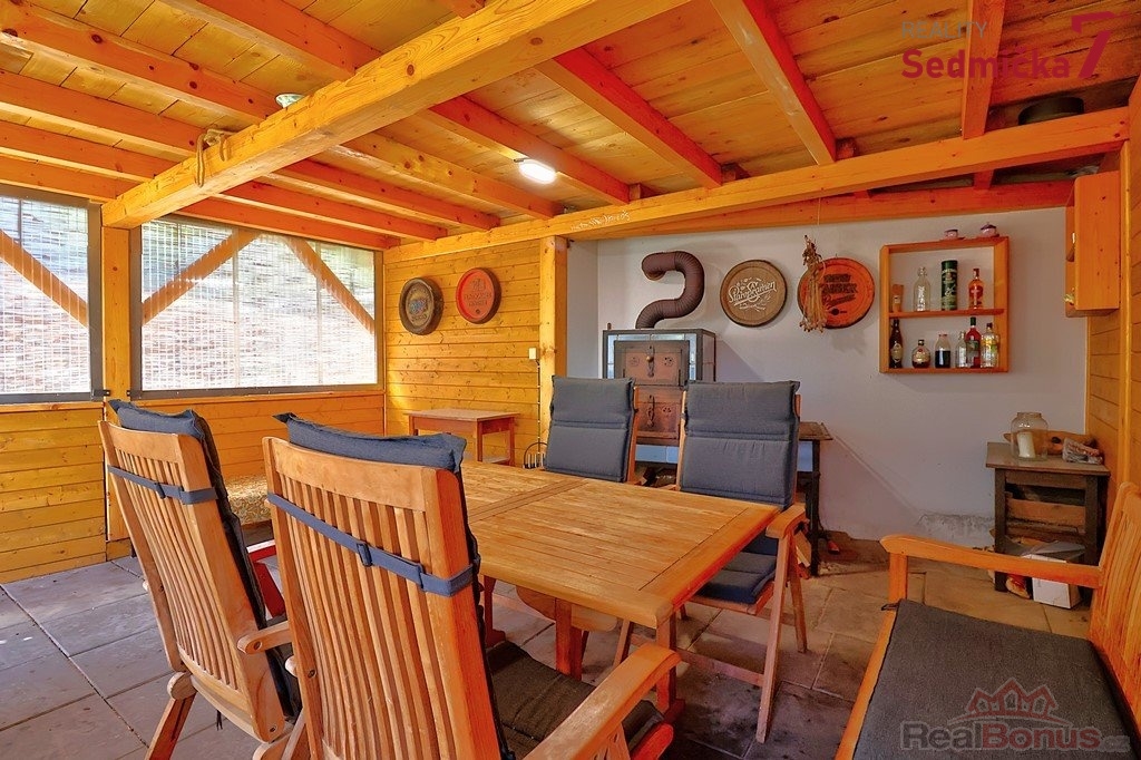 K bytu patří sklep, 1/3 společného sklepa, zahrada s dřevníkem, 2 parkovací místa, pergola s elektřinou, vodou, odpadem a kamny, majitel může navíc využívat 2 horní podesty na schodišti.