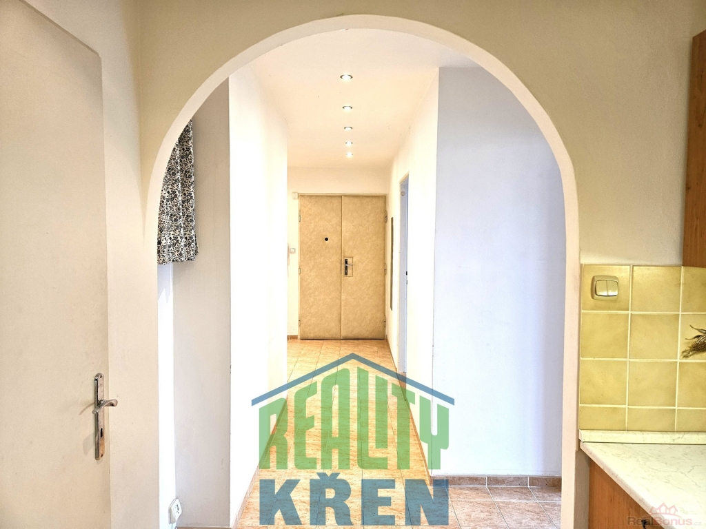 Vstupní předsíň (10 m2) s oknem do světlíku, v zadní části předsíně je kuchyně (5m2) s kuchyňskou linkou, sporákem a dřezem, koupelna (3,7 m2) se sprchovým koutem, umyvadlem, místem pro pračku, WC a oknem do světlíku. Obývací pokoj ( 20 m2), ložnice (16 m2) - oba pokoje mají okna do klidného vnitro-bloku. Byt je velmi tichý.