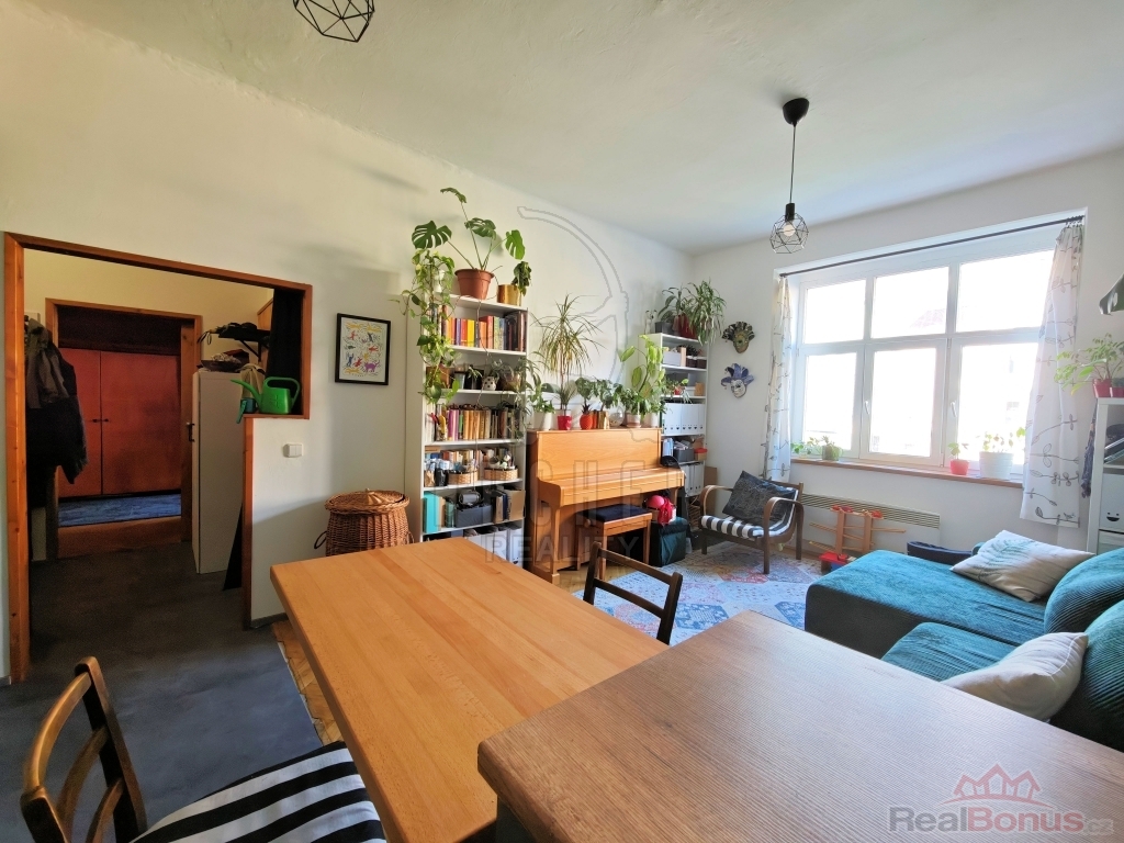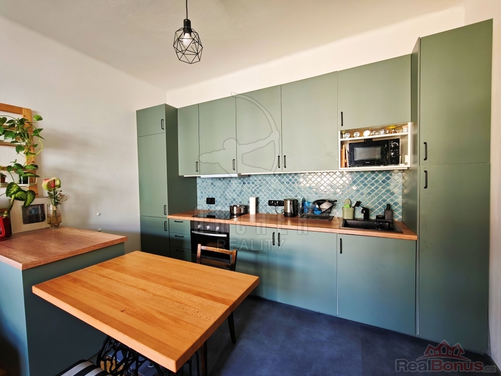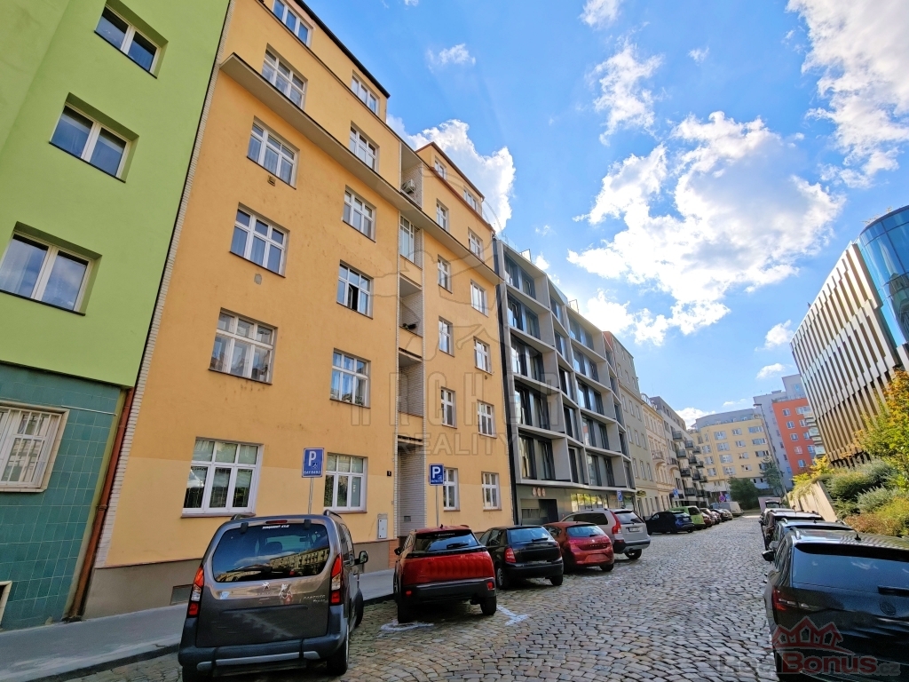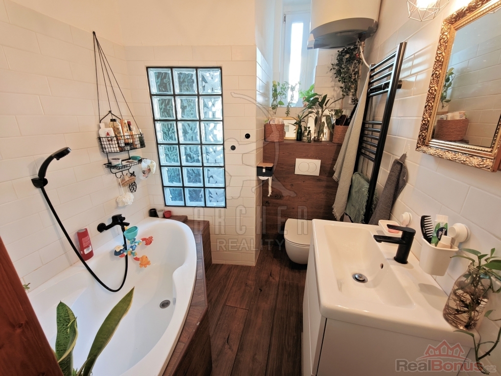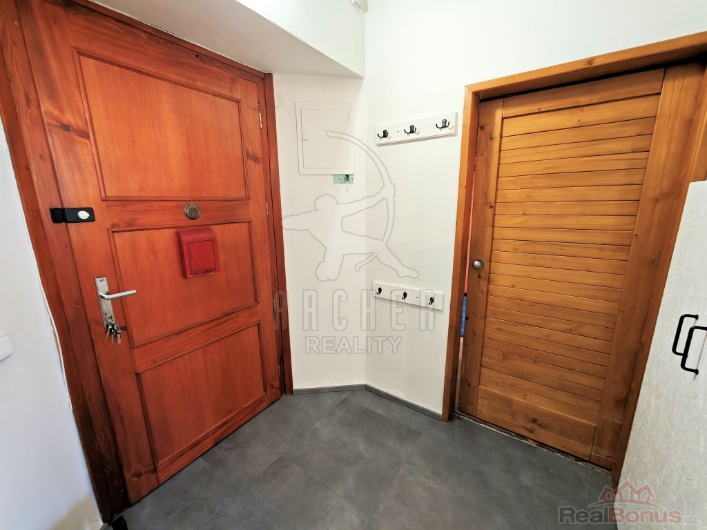 Byt nabízí prostornou vstupní předsíň, obývací pokoj s plně vybaveným novým kuchyňským koutem z roku 2024 (indukce, elektrická trouba, digestoř, myčka, pračka, vestavěná lednice s mrazákem), neprůchozí pokoj/ložnici s vestavěnou skříní a dřevěným patrem ke spaní (výška stropu 3m) se vstupem na nevelkou lodžii. Díky promyšlenému využití prostoru bytu majiteli působí byt velice útulně a vkusně. Koupelnu tvoří rohová vana s umyvadlem, společně s toaletou (zděné jádro). Zabudované luxfery efektně prosvětlují prostor rekonstruované koupelny ( rok 2023). Podlahovou krytinu tvoří renovované parkety, vinyl a dlažba. Plastová okna s dvojsklem. Nové rozvody elektro. Vytápění zajišťují elektrické přímotopy, ohřev vody bojlerem. Severo/západní orientace bytu. Součástí bytu je rovněž čistá a suchá sklepní koje v suterénu domu. Nízké provozní náklady. K dispozici společná kočárkárna. Benefitem pak udržovaný, klidný vnitroblok se zahradou k posezení.