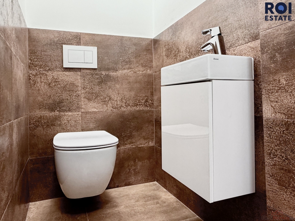 Koupelna je vybavena vanou, toaleta je oddělená. Praktickým benefitem je technická místnost s pračkou a dostatek úložného prostoru v podobě velké vestavěné skříně na chodbě. Byt je částečně vybavený a připraven k nastěhování.