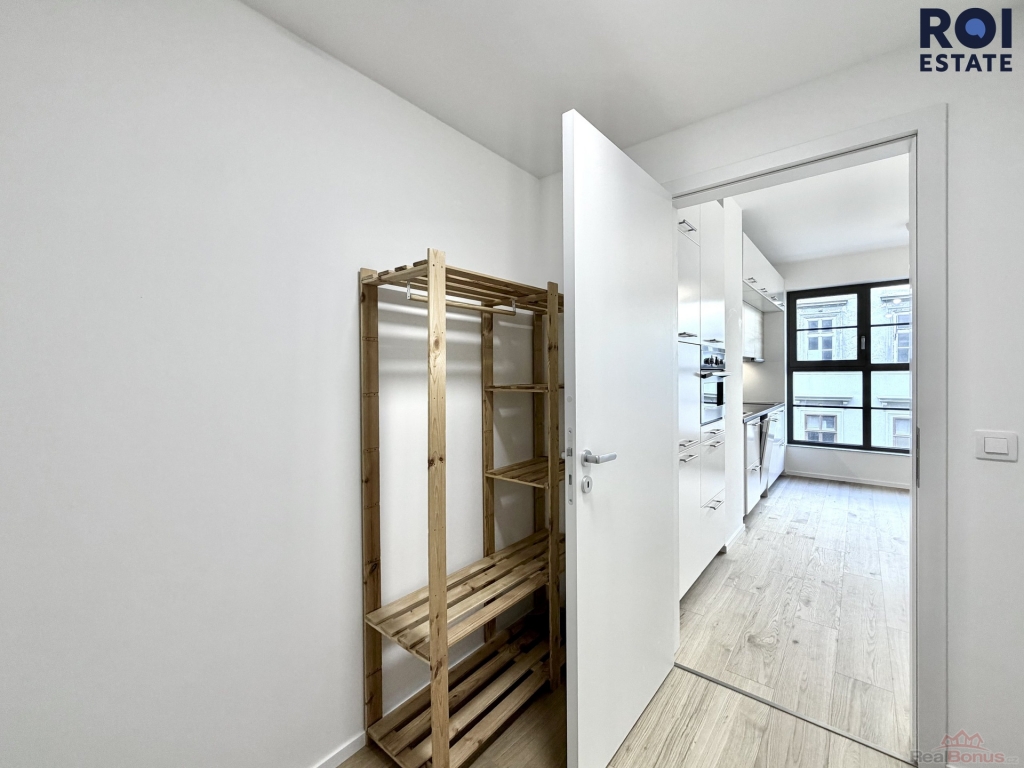 Vstupte do světa čistého designu a moderního pohodlí. Ateliér o výměře 23 m2 se nachází ve 3. patře s výtahem a je připraven stát se vaším novým domovem nebo inspirativním pracovním prostorem. Srdcem hlavní místnosti je luxusní kuchyňská linka na míru v kombinaci bílé barvy a dekoru dřeva, doplněná o elegantní tmavou pracovní desku. Kuchyně je plně vybavena špičkovými vestavnými spotřebiči včetně trouby, varné desky, digestoře, dřezu, vestavné lednice s mrazákem a nechybí ani praktická myčka nádobí a pračka.