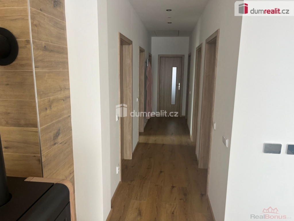 , Dumrealit.cz Vám zprostředkuje pronájem rodinného domu 4+1 v obci Dolní Bousově. Dispozice domu: Ze zádveří jsou vstupní dveře do technické místnosti, dále pak navazuje komunikační chodba ze které jsou již jednotlivé vstupy do dalších místností. Kuchyňská linka má vestavěnou troubou, mikrovlnou troubu, varnou deskou myčku a digestoř. Kuchyň, jídelna a obývací pokoj tvoří jeden velký otevřený prostor, jsou zde instalována nová krbová kamna s rozvodem do radiátoru a jako druhá varianta je v domě nainstalovaný elektrický kotel který se nachází v technické místnosti hned u vstupních dveří do domu. V technické místnosti najdeme i zázemí pro kolektory, boler a klimatizaci.