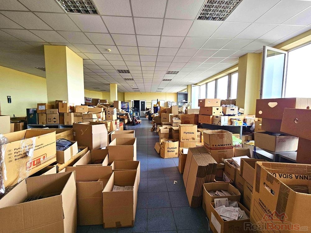 Prostory pod vlastním uzavřením ( celé podlaží ) - viz foto. 2x nákladní výtah. 1x osobní výtah. Nosnost podlah min 750 Kg/m2. Dnes děleno příčkou na skladové a admin. prostory - e-shop. Příčky lze posunout či zcela demontovat - viz plánek. K dispozici od 10-2025