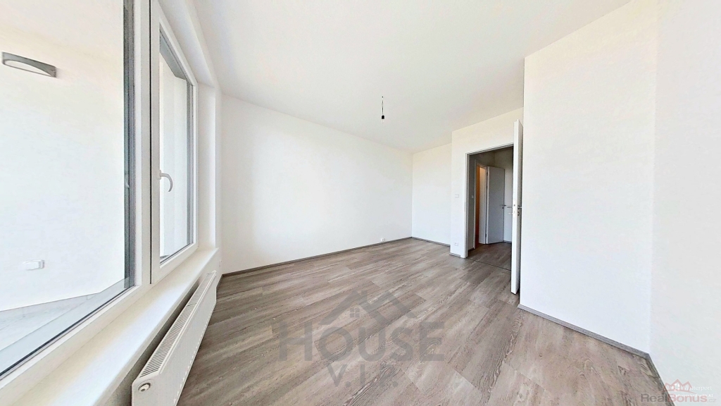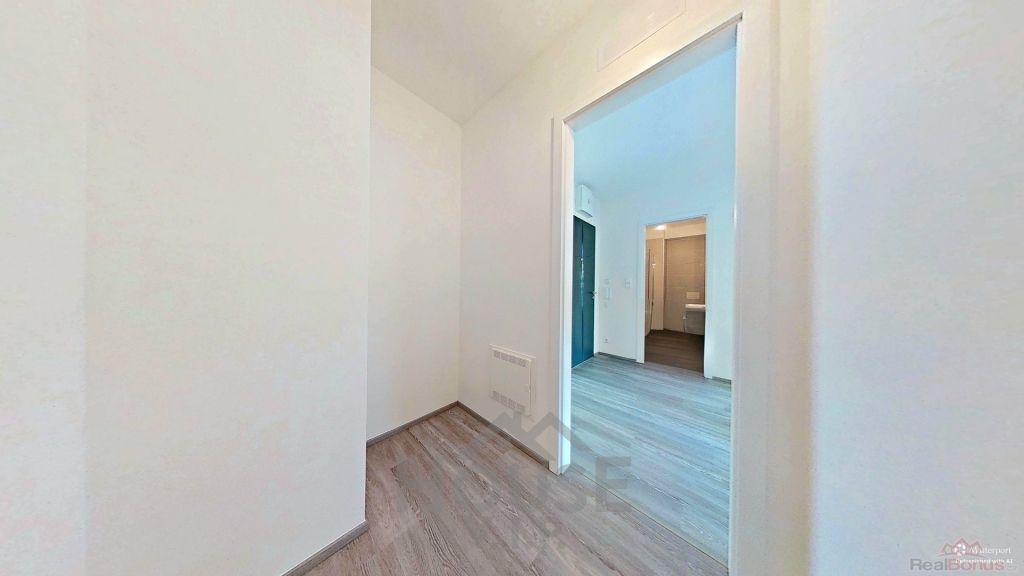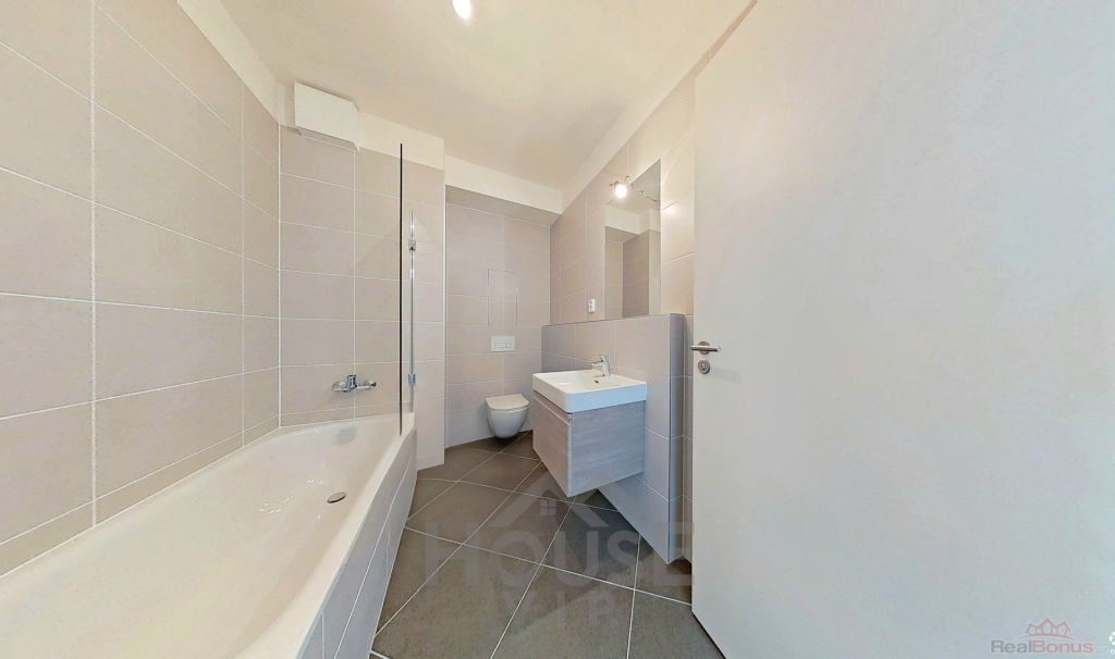 Byt je dokončen ve standardu zahrnujícím interiérové dveře, položené podlahy a koupelnu v nadstandardním provedení značky Laufen.