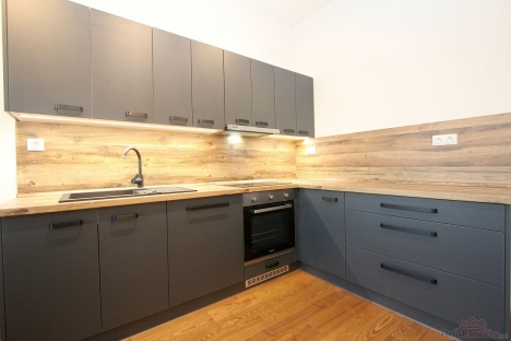 Byt se pronajímá včetně vybavené kuchyňské linky s potřebnými spotřebiči (varné desky, trouby, odsavače par, myčky nádobí, ledničky, pračky se sušičkou).