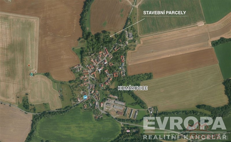 Pozemky jsou na samotném kraji Komárovic, z toho plyne absolutní klid a výhled do krajiny.
