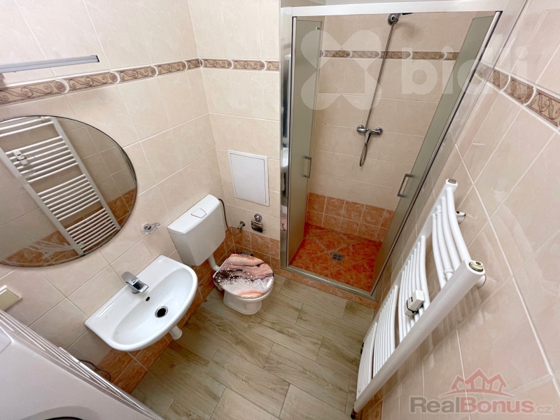 - nová dlažba v koupelně a v předsíni z roku 2025