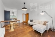 Hezký byt na perfektní adrese Prahy 3 - Žižkov. Prostorný byt 2+kk s balkonem, parkovacím stáním a sklepem v modernějším domě s orientací oken na jih a do klidného vnitrobloku. Je laděn do světlých barev a má příjemnou atmosféru. Zařizovací předměty jsou značky Ikea, na podlahách nalezneme dřevěnou podlahu a dlažbu. Součástí je sedací souprava, postel s matracemi, větší jídelní stůl, pračka, v koupelně vana.