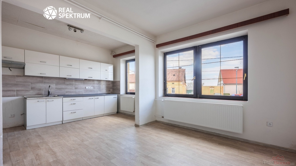 Nabízíme k prodeji rodinný dům v obci Kyjovice, který představuje zajímavou kombinaci bydlení a podnikání s dalším potenciálem do budoucna. Nemovitost je aktuálně rozdělena na dvě samostatné části. V jedné se nachází prostorný byt o dispozici 2+kk (58 m2) vhodný pro komfortní bydlení, druhou část tvoří obchodní prostor s kompletním zázemím (98 m2). Ten může sloužit pro vlastní podnikání, případně jej lze upravit na další prostornou bytovou jednotku.