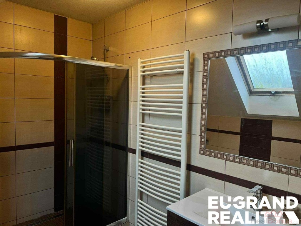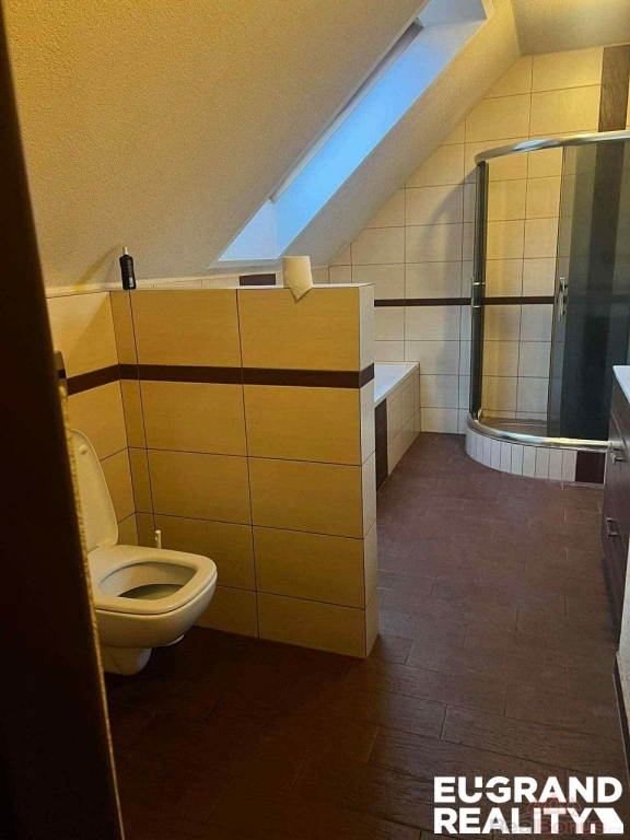 V patře (182 m2) je bytová jednotka o dispozici 4+1 (kuchyně, 4 pokoje, předsíň, koupelna s WC).