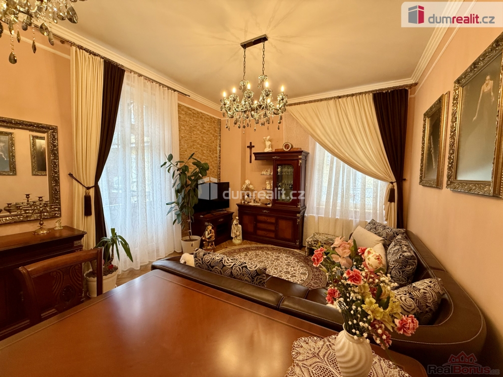 Byt je v osobním vlastnictví a jeho čistá podlahová výměra činí 86,00 m. Byt je situován do 4. podlaží (3. patro) patrového cihlového domu vystavěného na konci 19. století.