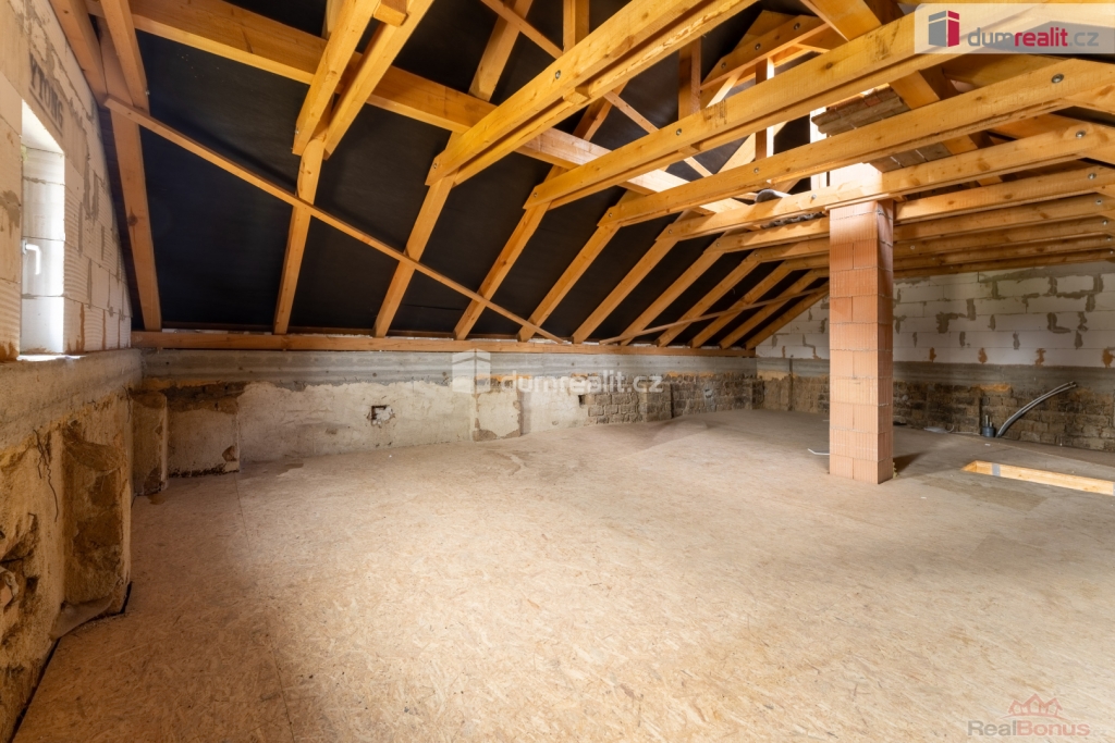 Podkroví nabízí volný potenciál: dětský pokoj, home office s výhledem, ateliér, knihovna záleží na vás, co v tom prostoru najdete.