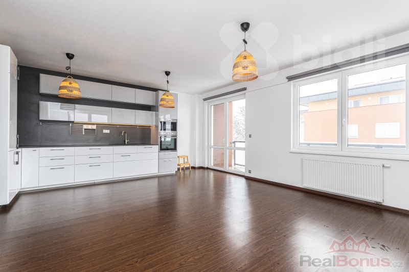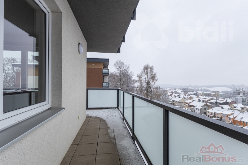 Obývací pokoj je propojen s kuchyňskou částí, která je vybavena moderní kuchyňskou linkou. Díky velké terase o rozloze 16 m2 si užijete krásný výhled na celé město a okolí. Orientace na jih zajišťuje dostatek slunečního světla a příjemnou atmosféru po celý den.