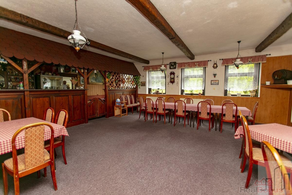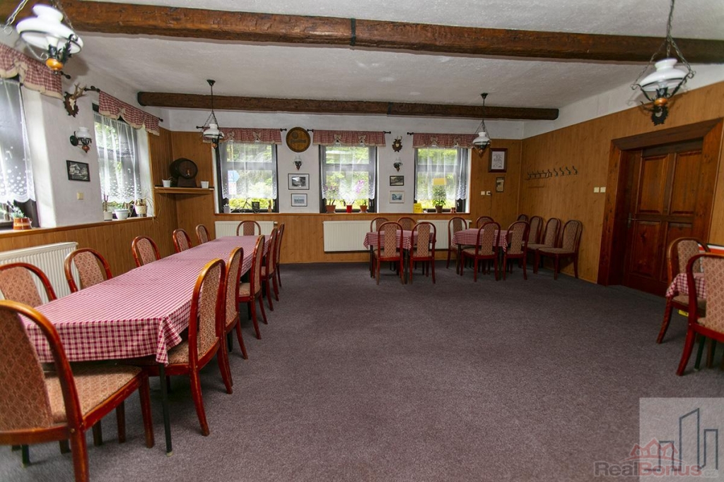 Objekt má 3 podlaží, aktuálně 11 pokojů, vlastní restauraci, kuchyňské zázemí, sklady a sklep. Nachází se v klidné lokalitě u lesa a říčky, s celoročním přístupem autem a vlastním parkovištěm až pro 15 aut.