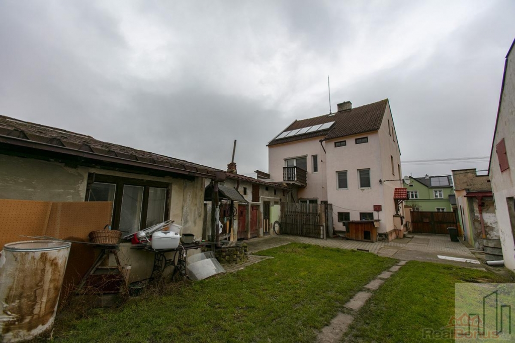 Dům je vhodný pro dvougenerační bydlení a přilehlý komerční objekt je v tuto chvíli pronajímám jako truhlárna. Jeho součástí je dvojgaráž. Po dohodě je možné tento prostor uvolnit. Dům má dvě nadzemní podlaží a je rozdělen na dvě bytové jednotky (3+1 90 m a 3+ kk 70 m), každá s vlastní koupelnou a WC. Byt v patře má terasu a vstup na půdu, kterou lze přestavět na další bytovou jednotku. Dům je kompletně podsklepený, má zrekonstruovanou fasádu a solární panely na střeše. Vytápění je řešeno kotlem na tuhá paliva a elektrickým kotlem. Lze kombinovat. Soubor těchto nemovitosti je zajímavou investiční příležitostí nebo lze získat nájem jak z provozu komerčního objektu tak z pronájmu bytových jednotek. Majitel by rád prodal nemovitost jako celek, ale nebrání se i prodeji zvlášť. Prostor mezi dílnou a domem (dvůr) je lemován řadou místností, které nabízí další prostor. Součástí dvora je i studna s užitkovou vodou.