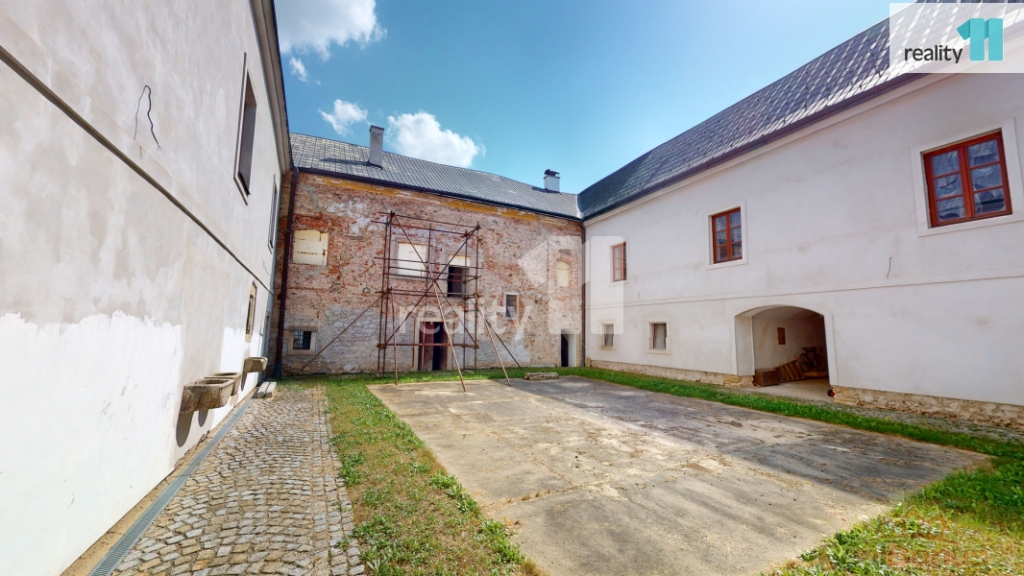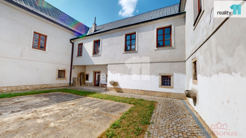 , Reality 11 Vám zprostředkují koupi jedné z nejstarších historických staveb v širším centru Města Dačice. Jedná se o dvoupodlažní historickou budovu o celkové podlahové ploše 1269m, s tím, že první nadzemní podlaží má užitnou plochu 650m + nádvoří 277m a druhé nadzemní podlaží má užitnou plochu 619m. Celková zastavěná plocha stavbou je 1277m a plocha pozemku přiléhajícího ke stavbě je 385m. Tato budova čeká na svého nového vlastníka, který má rád historické objekty a představivost s fantazií, jak tuto budovu přestavět k obrazu svému. Případně jak tuto budovu využít k podnikání, bydlení, přestavbě na hotel, využití dle původního plánu (restaurace s vinárnou a ubytováním) nebo zrekonstruovat do původní podoby historické tvrze. Jedná se specifickou nemovitost s bohatou historií a kouzlem. Tvrz je vedena jako nemovitá kulturní památka a lze na rekonstrukci čerpat dotace. Na již provedené opravy bylo vydáno stavební povolení a opravy probíhaly poslední dvě desetiletí (nové rozvody elektřiny, rozvody topení, rozvody odpadů a vody, odvodnění, komíny, z větší části fasády, kontrola statiky atd.). V sousedství tvrze je k dispozici také pozemek o celkové výměře 1507m, který je možné odkoupit. Pozemek je v územním plánu veden jako plocha SC - plochy smíšené centrální. V případě zájmu o kompletní informace, kontaktujte makléře společnosti. Zašleme vám odkaz na 3Dvirtuální prohlídku od společnosti 3Dvirtualcz, kde si nemovitost můžete projít z pohodlí svého domova. Máme pro vás půdorysy jednotlivých podlaží a další zajímavé informace o historii vám také rádi pošleme. Prodej je možné uskutečnit převodem nemovitosti nebo převodem společnosti. A pokud projevíte zájem o osobní prohlídku historického objektu, jsme připraveni vás provést po celém objektu. Připravte se na pěknou procházku zdmi, ve kterých se skrývá historie Dačic až do patnáctého století. Děkuji, že jste dočetli až dokonce a nyní si můžete prohlédnout fotografie a následně se ozvat s dotazem na osobní prohlídku. Ev. číslo: 24617. Energetický štítek: G (300 kWh/m2/rok).
