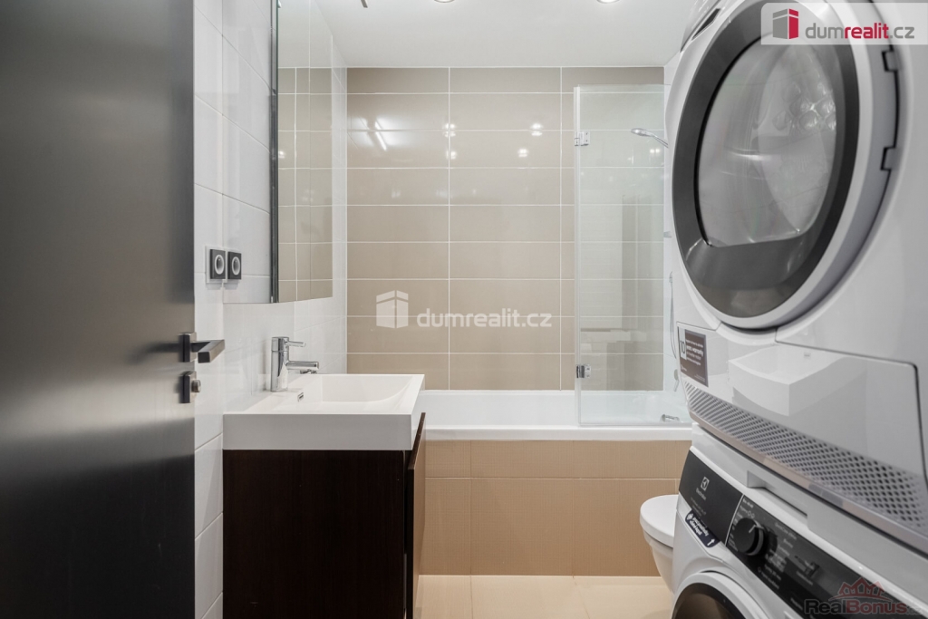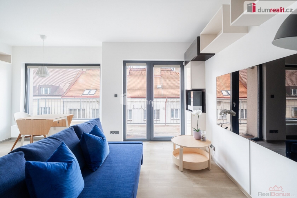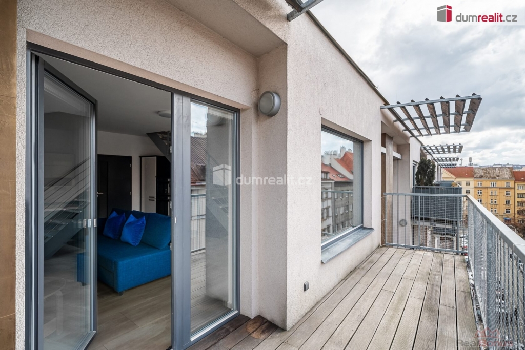 , Velice ráda Vám zprostředkuji pronájem nadstandardně vybaveného mezonetového bytu 3+kk o celkové ploše 89 m. Podlahová plocha činí 74 m a k bytu náleží dvě terasy o společné výměře 15 m. Byt se nachází ve velmi tiché ulici bez rušivých podniků. Skvělou dopravní dostupnost zajišťuje stanice metra Palmovka, která je vzdálená pouhé tři minuty pěšky, a kousek od domu najdete i zastávku tramvaje. Spodní patro tvoří předsíň s velkými vestavěnými skříněmi a samostatná toaleta s menším úložným prostorem. Srdcem tohoto patra je světlý obývací prostor s plně vybaveným kuchyňským koutem. K dispozici zde máte lednici s mrazničkou, troubu, myčku, indukční varnou desku i mikrovlnnou troubu. Obývací část je vkusně zařízena vestavěnými skříňkami, modrou rozkládací sedačkou, odkládacím stolkem, jídelním stolem se židlemi a špičkovou televizí s úhlopříčkou 55 palců. Z pokoje je zajištěn přímý vstup na terasu, přičemž okna i dveře stíní praktické obousměrné žaluzie. Na zemi ve spodním patře leží kvalitní vinylová podlaha. Horní patro nabízí chodbu s další vestavěnou skříní a klimatizací, která dokáže příjemně ochladit celý byt. Koupelna je vybavena vanou, skříňkami a nechybí zde ani pračka se sušičkou. Hlavní ložnice disponuje velkou šatní skříní, útulnými závěsy a dveřmi se sítí proti hmyzu. Druhá ložnice je vybavena praktickým jednolůžkem a na oknech má připravené žaluzie i závěsy. Podlahy v horním patře jsou plovoucí. K nemovitosti patří také sklep a vyhrazené parkovací stání v garáži. Budova splňuje energetickou náročnost třídy B, takže je velmi úsporná. Měsíční nájemné je stanoveno na 41.000,- + zálohy na domovní služby, spotřebu vody a vytápění 6 500 Kč. Energie jsou řešeny přepisem na nového nájemníka. Majitel vyžaduje uhrazení vratné kauce ve výši 82.000,- Kč, a provize za zprostředkování činí 41.000,- Kč. Odběr elektřiny se následně přepisuje přímo na nového nájemce. Pokud Vás toto krásné bydlení zaujalo, neváhejte mě kontaktovat, velmi ráda Vám byt osobně představím. Ev. číslo: 655276. Energetický štítek: B