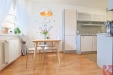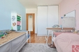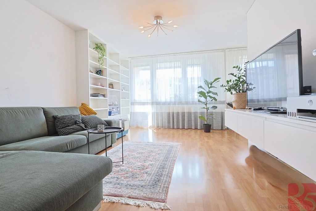 Oba pokoje, každý o rozloze přibližně 13 m2, disponují vestavěnými šatními skříněmi, které nabízejí dostatek úložného prostoru, a zároveň z nich je možné si užívat volný a inspirativní výhled až do centra Prahy. Na světlý obývací pokoj plynule navazuje jídelní část a moderně zařízená kuchyň, ze které se otevírá vstup na příjemnou zasklenou lodžii, ideální pro ranní kávu nebo večerní relaxaci.