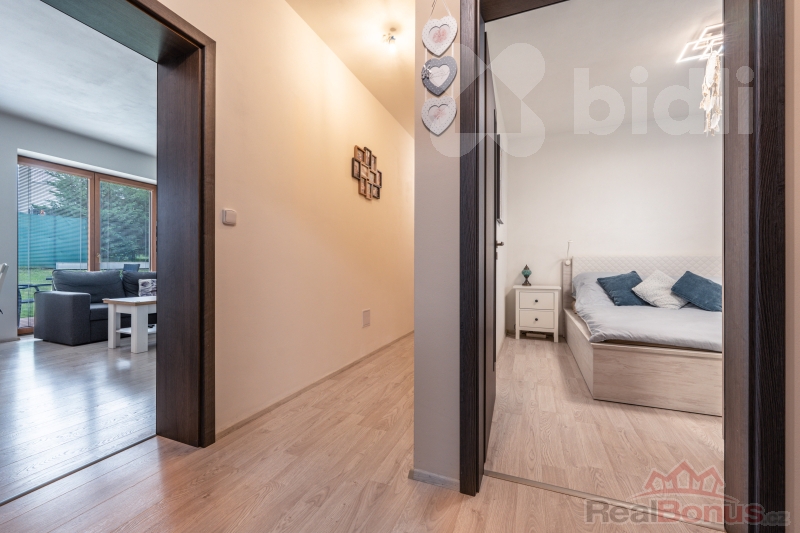 Prodej plně vybaveného moderního bytu 4+kk o ploše 84m2 se zahradou 195m2 se nachází v klidné části Mníšku pod Brdy.