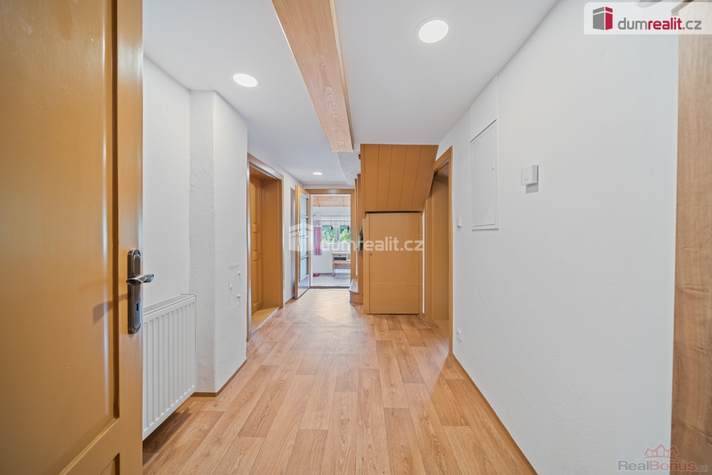 ZLEVNĚNO!!! Cena platí při podpisu rezervační smlouvy do konce 3/2026. DOPORUČUJEME! , Nabízíme k prodeji stylovou zděnou chalupu po citlivé rekonstrukci, která se nachází v klidné části obce Dolní Rokytnice. Jedná se o jedinečnou příležitost pro ty, kteří hledají komfortní zázemí v Krkonoších ať už pro vlastní rekreaci, trvalé bydlení, nebo jako investiční objekt pro krátkodobé pronájmy. Chalupa je situována v atraktivní lokalitě jen 10 minut od vyhlášeného skiareálu Horní Domky a Kamenec s přímým napojením na Lysou horu a 2. nejdelší sjezdovku v ČR. V bezprostřední blízkosti se nachází Krkonošská magistrála a turistické trasy na hřebeny Krkonoš. Díky tomu je nemovitost ideální nejen pro milovníky zimních sportů, ale i pro turistiku, cykloturistiku či relaxaci v přírodě po celý rok. Dům nabízí velkorysé prostory pro vícečlenné rodiny, skupiny přátel, firemní akce nebo investiční záměr v oblasti krátkodobých pronájmů. Dispozice: 5+1, Užitná plocha: 460 m, Zastavěná plocha: 270 m, Pozemek: 800 m. Přízemí - Vstupní chodba s dostatkem prostoru pro odkládání sportovního vybavení, Prostorný obývací pokoj s možností umístění krbových kamen, ideální pro společné chvíle a posezení po návratu z hor, Kuchyně po rekonstrukci, vybavená moderní linkou a připravená na provoz pro větší počet osob, Jídelní kout s kapacitou pro rodinná i skupinová setkání, Koupelna s novými obklady a sanitou, samostatné WC. Patro- 3 samostatné ložnic různých velikostí, které nabízejí dostatek prostoru až pro několik rodin nebo větší skupinu hostů, otevřený prostor využitelný jako společenská místnost, herna pro děti, další ložnice nebo relaxační zóna. Nemovitost prošla kompletní rekonstrukcí a je připravena k okamžitému užívání - nové rozvody elektřiny, nové podlahy, původní dřevěná okna po kompletní renovaci, částečné zateplení objektu, moderní elektrokotel Vaillant zajišťující úsporné vytápění a ohřev vody. Objekt je díky svému technickému stavu vhodný k celoročnímu využívání. Využití a investiční potenciál - rekreační bydlení a odpočinek v přírodě, krátkodobé či dlouhodobé pronájmy s atraktivním výnosem, rodinné dovolené, skupinové pobyty, teambuildingy a firemní akce, týdenní pobyty na horách po celý rok. Jedná se o výjimečnou investiční příležitost v oblasti s vysokou poptávkou po ubytování. Nemovitost doporučujeme všem, kdo hledají kombinaci tradiční atmosféry, moderního komfortu a strategické polohy v Krkonoších.