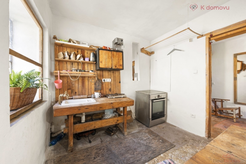 K nemovitosti náleží také dvůr s ohništěm a velkou stodolou, která v současné době slouží jako atelier a stolařská dílna. Velkým bonusem je také rozlehlý pozemek se zahradou, cca 3.000m2, který nabízí možnosti jak pro odpočinek, tak i dostatek prostoru pro parkování, nebo vytvoření různých zákoutí a míst k různému využití pro kutily či zahrádkáře