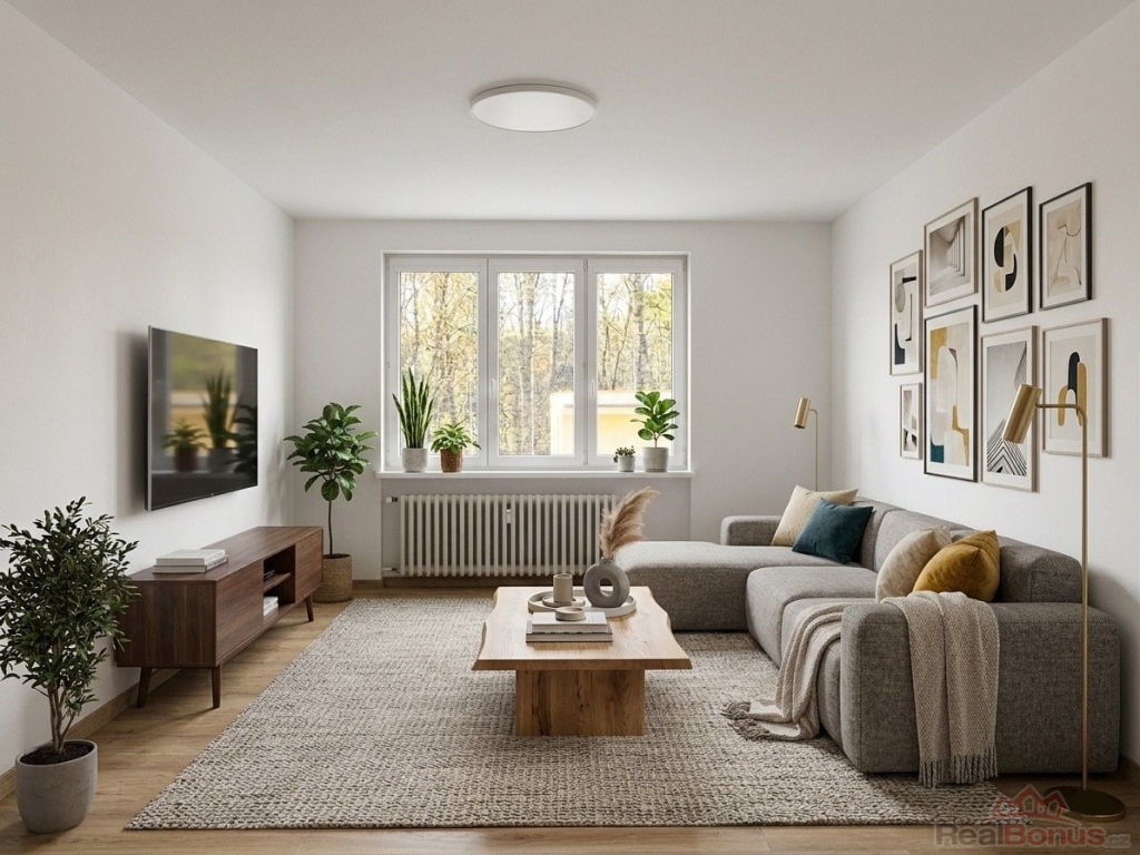 Interiér působí moderně a vzdušně. Dispozice nabízí dvě samostatné místnosti, které zajišťují dostatek soukromí i pohodlí, a praktickou kuchyň ideální pro každodenní vaření i posezení. Na chodbě se nachází prostorná vestavěná skříň, díky které budete mít vždy dostatek úložného prostoru.