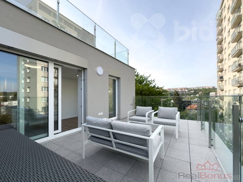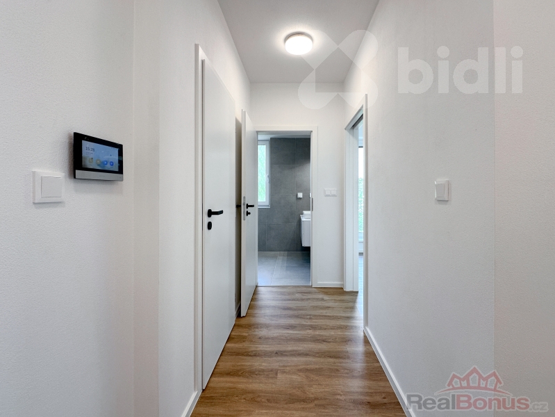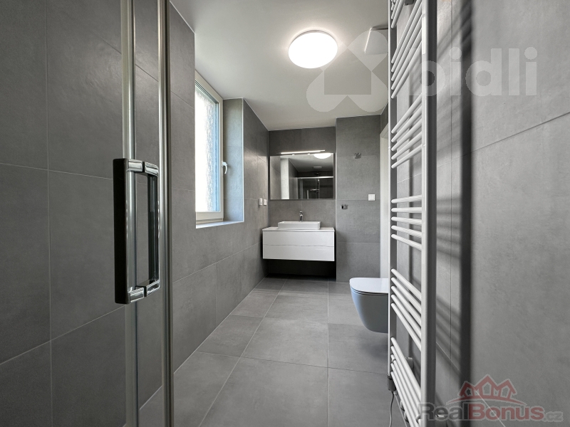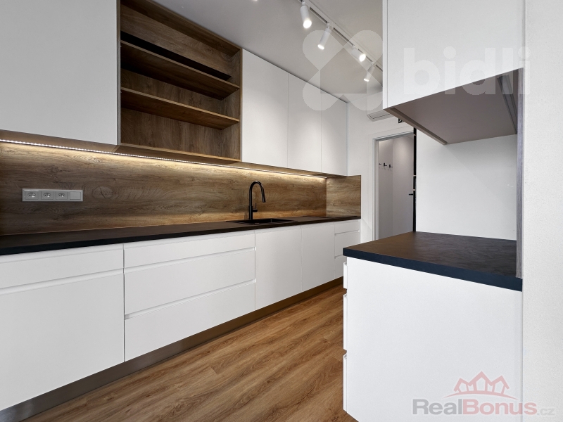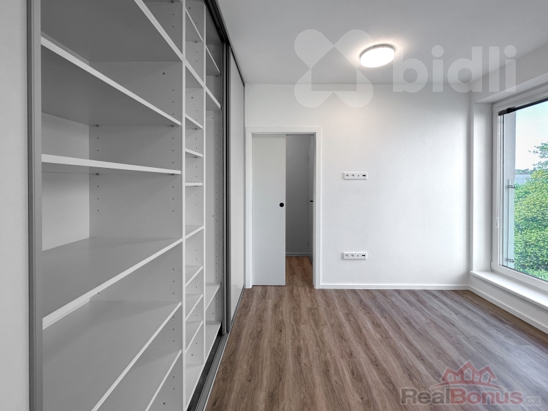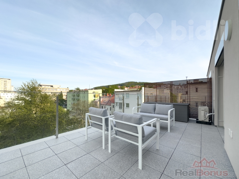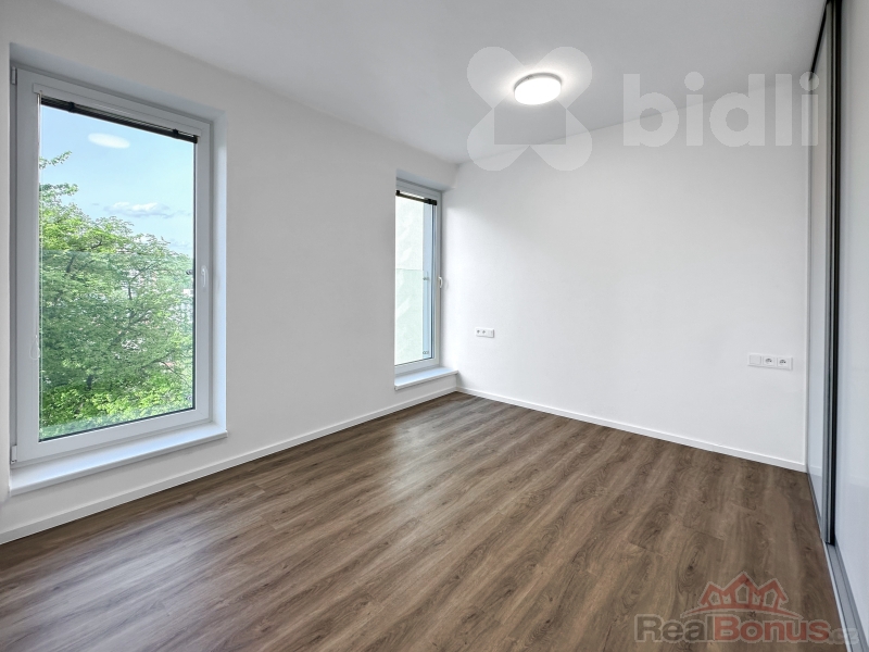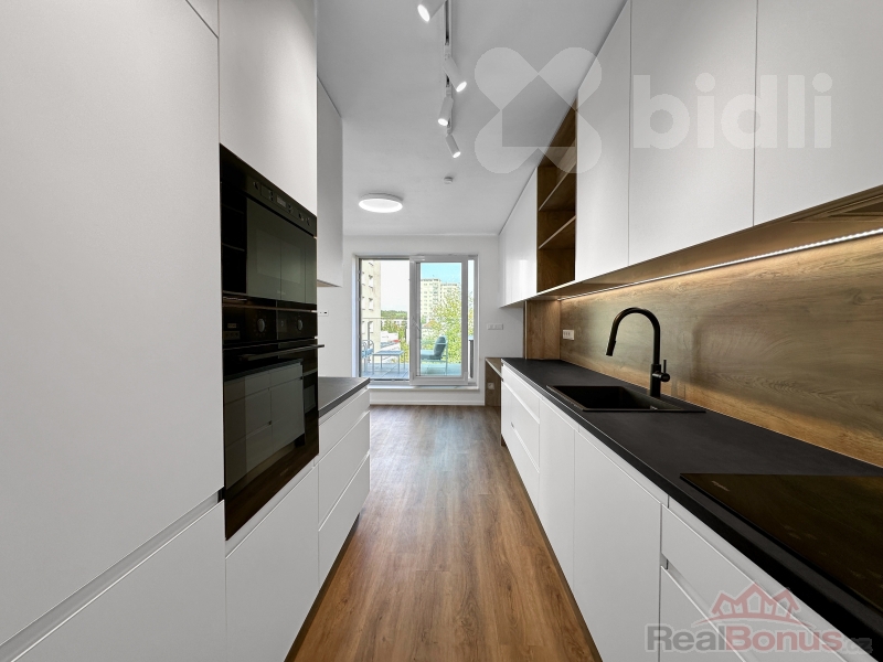 Ve výhradním zastoupení klienta Vám nabízíme exkluzivní pronájem bytu 2+kk (51 m2) s terasou (22 m2), sklepem a s vnitřním parkovacím stáním v samotném centru krajského města Zlína. Tento byt najdete v šestém nadzemním podlaží novostavby bytového domu Rezidence Lorencova. Za pomoci architektky byla majiteli upravena původně navrhovaná dispozice bytu a byl vytvořen moderní a vzdušný prostor, který je uzpůsoben k pohodlnému a nadstandartnímu bydlení. Byt je laděn do neutrálních barev, v rámci co nejlepšího využití užitných prostor bylo položeno podlahové topení. Z obývacího pokoje, který je kombinován s kuchyní, lze vstoupit na prostornou terasu, kterou v případě potřeby lze oddělit od vnitřního prostoru venkovními žaluziemi. Polodlouhý kuchyňský kout umožnil plně využít prostor na obou jeho stranách, kde byla na míru zhotovena kuchyňská linka s kompaktní černou pracovní plochou, dvířky v bílém matu se zapuštěnými úchyty a kováním s tichým dojezdem. Vše v ní má své místo, a to včetně multifunkční a mikrovlné trouby, vestavěné lednice s mrazákem, myčky, varné desky a odsavače par. Vše od značky Whirpool. Zádový panel linky byl zvolen ve stejném designu dubu alicante stejně jako vinylové podlahy v celém bytě. Mezi linku a terasu byl integrován pracovní stůl s úložným prostorem a výstupy pro elektroniku a internet (optický kabel Internext). Toto místo jistě ocení ti, kteří využívají home office. Celou společenskou zónu bytu je možno klimatizovat. V klidové zóně bytu je dostatek úložných prostor, a to jak v samostatné ložnici se severní orientací do parku, tak v předsíni. Chytře byl využit menší prostor původní toalety a byla zbudována samostatná technická místnost s pračkou. Koupelna se sprchovým koutem a toaletou dotváří ucelený moderní vzhled tohoto exkluzivního, ale velmi příjemného bydlení. Součástí nájmu a k dispozici nájemníka je garážové stání v přízemí domu, stejně jako prostorný zděný sklep. Bytový dům s výtahem o třinácti bytech byl kolaudován v roce 2024 a svým obyvatelům nabízí velmi klidné a pohodové bydlení se všemi výhodami, které centrum města Zlína nabízí. Přijďte se sami o kvalitách tohoto bydlení přesvědčit, naše makléřka Vás ráda nabízeným bytem provede.