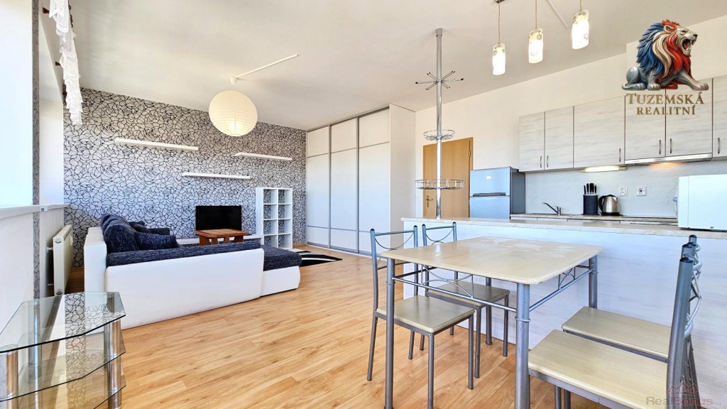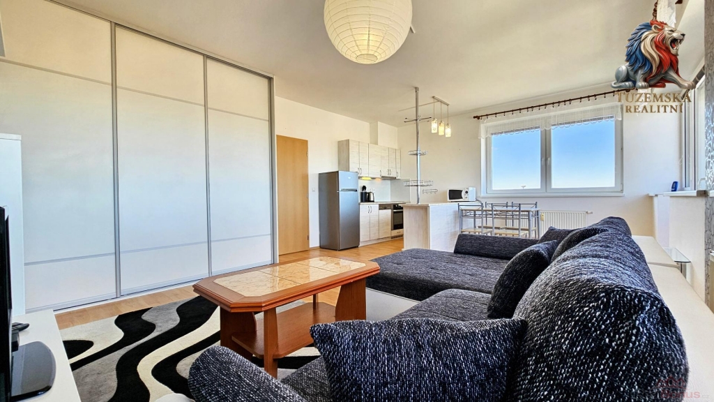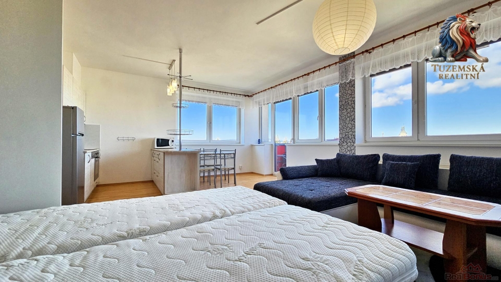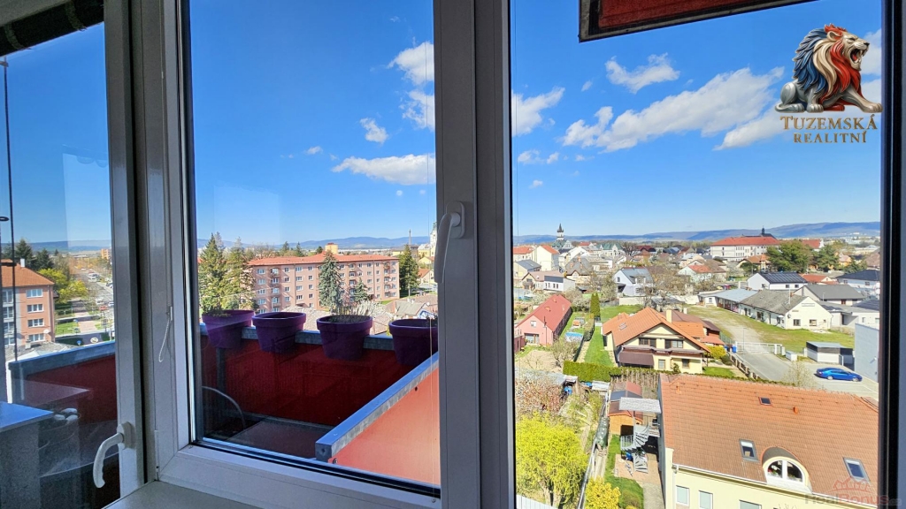 Pronájem pěkného velkého bytu 1+kk s balkónem a parádním výhledem na Jeseníky a Uničov ze všech oken.