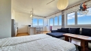 Výhled je opravdu úchvatný a proto je stěna směrem k Jeseníkům záměrně prakticky celá z oken a je v ní vstup i na balkón. Vaše oči to neustále nutí se dívat ven a kochat se tím nádherným výhledem. Pohled do dáli je pro oči namáhané koukáním do mobilů a počítačů velmi blahodárný. Byt je tolika okny i zároveň hezky prosvětlen, ale ne přímým sluncem. V létě je v něm příjemně a na parapetech se báječně daří květinám.