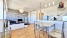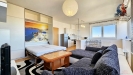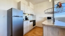 Ačkoli je byt 1+kk jeho pokoj je nadstandardně veliký a vejde se do něj vše, co ptřebujete. Kuchyňský kout, obývák a otevřením vestavěné skříně a sklopením velké postele přibude i ložnice. Uvnitř skříně se navíc objeví krásný obraz řeckého města Oia na ostrově Santorini, který Vás příjemně uvede do říše krásných snů o dovolené.