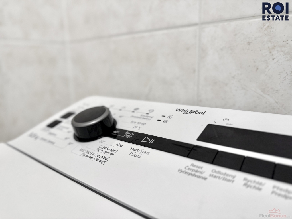 Koupelna: Vybavena pračkou Whirlpool s praktickým horním plněním.