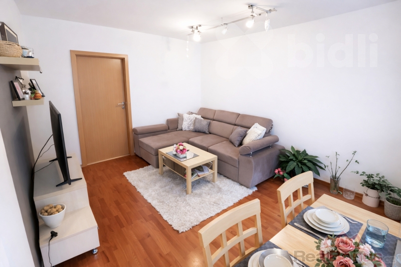 Byt má praktickou dispozici: obývací pokoj s kuchyňským koutem, ložnici, koupelnu s WC a chodbu. Součástí je kuchyňská linka, dvě prostorné vestavěné skříně a byt je částečně vybaven, takže se můžete rychle a pohodlně zabydlet. K bytu náleží také prostorný sklep.