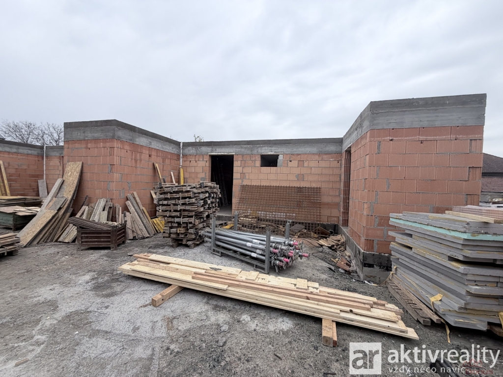 Dům je součástí tří samostatných řadových rodinných domů, přičemž každý z nich stojí na vlastním pozemku a má vlastní přípojky elektřiny, vodovodu i kanalizace. Nabízen je pouze jeden z těchto domů, což z něj činí zajímavou a omezenou příležitost. Dispozice 4+kk nabízí ideální rozložení prostoru pro rodinné bydlení, kdy v přízemí dominuje prostorný obývací pokoj s kuchyňským koutem o velikosti 36,2 m2 s přímým vstupem na zahradu, dále zde najdete předsíň, koupelnu, praktickou spíž a samostatný sklad. V patře se nachází ložnice, dva další pokoje, samostatné WC a vstup na terasu.