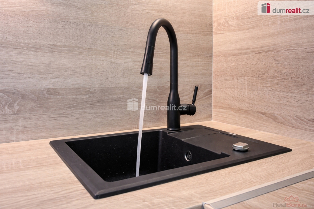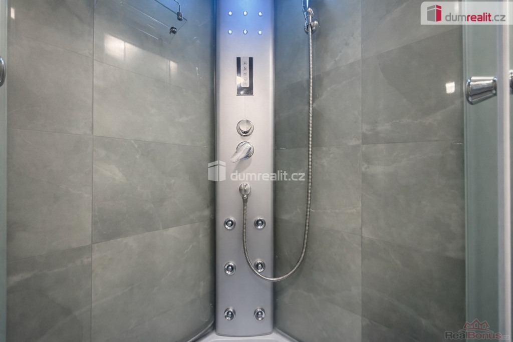 Dominantou bytu je nová kuchyňská linka vybavená mimo jiné myčkou nádobí. Koupelna nabízí nadstandardní sprchový kout s masážními funkcemi, který zajišťuje maximální komfort. Celý byt působí velmi světlým, čistým a moderním dojmem.