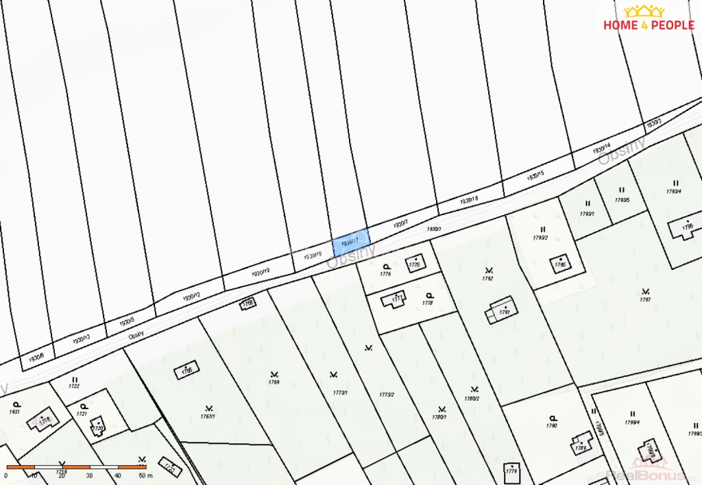 Pozemek má celkovou výměru cca 82 m, předmětem prodeje je tedy ideální polovina podílu.