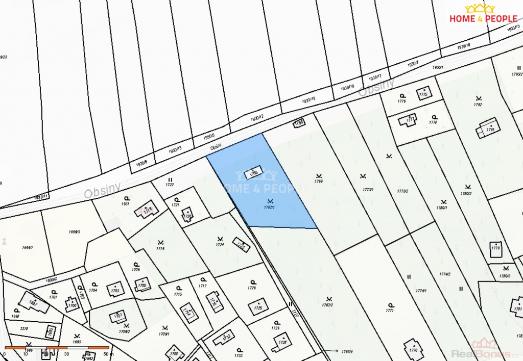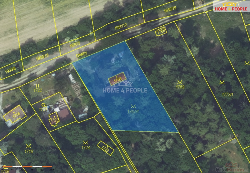Pozemek je hned vedle pozemku s parcelním číslem 1766, na kterém se nachází rekreační objekt.