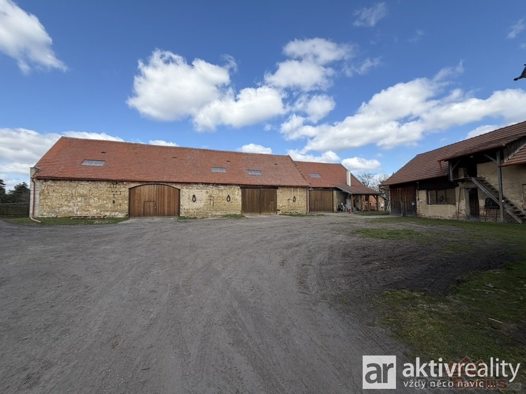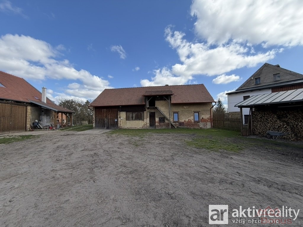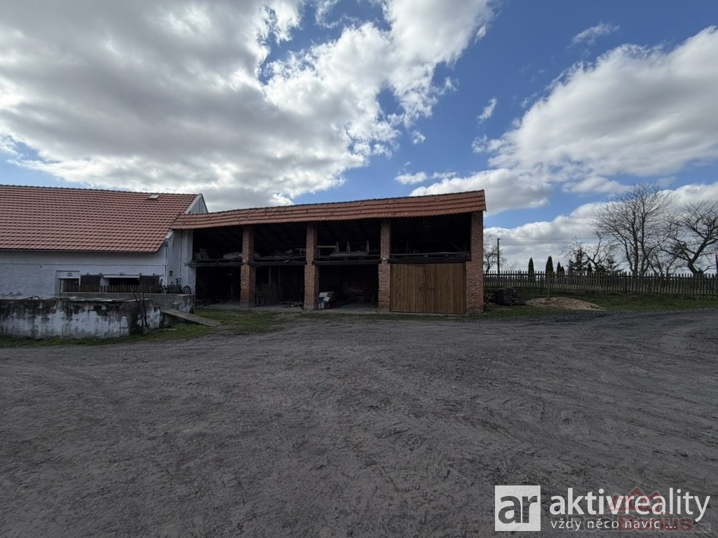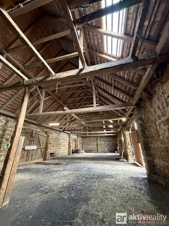 Naproti obytné části se nacházejí dvě hospodářské budovy ? menší a větší chlévy, které jsou v dobrém technickém stavu. Větší chlév má přibližně 320 m2, menší okolo 35 m2. Obě stavby mají pevné zdivo, jsou suché a stabilní, a nad nimi se rozkládá rozsáhlý půdní prostor vhodný pro skladování nebo další využití. Na stodolu dále navazuje vysoký otevřený přístřešek o ploše přibližně 122 m2, který nabízí další prostor například pro techniku či materiál.