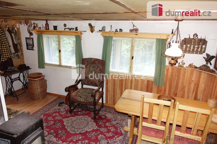 uvedená cena zahrnuje právní servis a odměnu RK, Dumrealit.cz Vám zprostředkuje prodej chaty v obci Libež osada Rasák. Jedná se o srubovou chatu z 60. let minulého století, vystavěnou na vlastním pozemku o výměře 357 m se zastavěnou plochou 47 m. Chata je umístěna na kamenné podezdívce, vnitřní stranu srubu tvoří obezdívka, střecha plechová. Dispozice je následující, prosklená veranda se vstupem na toaletu s umyvadlem, další vstup je do dílny, která by se lehce nechala uzpůsobit na obytnou místnost. Poslední vstup z prosklené verandy je do centrální části, kterou tvoří kuchyňský kout a hlavní prostor k užívání. Jehož součástí jsou křesla, pohovka a jídelní kout. V rohu místnosti se nachází úzké schodiště do podkrovní ložnice se vstupem na lodžii. Z boku chaty se nachází ještě sklad na nářadí a dva dřevníky hned v těsné blízkosti. Před vchodem je vytvořené útulné prostranství pro venkovní posezení a odpočinek s naprostým soukromím, neboť se jedná o poslední stavbu v osadě. Vytápění je zajištěno kamny na tuhá paliva v centrální části. Zdroj vody ze studánek v okolí případně z Psářského potoku, který protéká cca 20 m před chatou. Elektřina je přivedená 230 a 380 V. Osada je přes letní měsíce hojně využívána ostatními osadníky, mají zde i společné zázemí pro setkávání. Přístup k chatě je možný autem po vyježděné obecní cestě anebo cca 7 minut pěší chůze z parkoviště, kdy přejdete přes mostek nad řekou Blanicí, tudíž i rybáři si přijdou na své. Lokalita je velice líbivá, a hlavně dobře dostupná po dálnici D1, exit 41 je pouhých 13 km, veškerá občanská vybavenost ve Vlašimi 13 km. V případě zájmu o více informací či osobní prohlídku mne neváhejte kontaktovat, neboť kouzlo místa je opravdu jedinečné. Ev. číslo: 648269. Energetický štítek: G