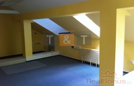 Díky svému umístění v nejvyšším, tj. 4. np, poskytuje dostatek klidu jak v pracovní době, tak i pro případný odpočinek. Jedna z místností je v klasickém provedení, druhá je v podkrovní úpravě a může výborně posloužit i jako společenská místnost. Rozměrově jsou místnosti řešené o ploše 44 a 53,4 m2. V rámci pronájmu je k dispozici i část společných prostor o 10 m2 (kuchyňka). Celkem tedy 107,5 m2.
